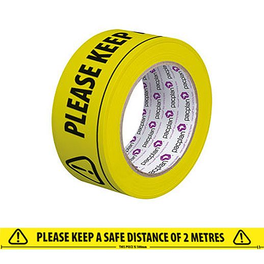 Help your customers conform with company guidelines using this pre-printed floor tape that reads 'PLEASE KEEP A SAFE DISTANCE OF 2 METRES'. This printed lane marking tape helps to provide clear guides on the shop floor or in the warehouse for customers and workers to follow.