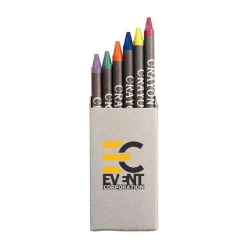 Promotional wax crayons are a cost-effective giveaway consisting of 6 coloured crayons housed in a recyclable cardboard box. The box can be branded with your logo on the front or back in up to 4 colours.