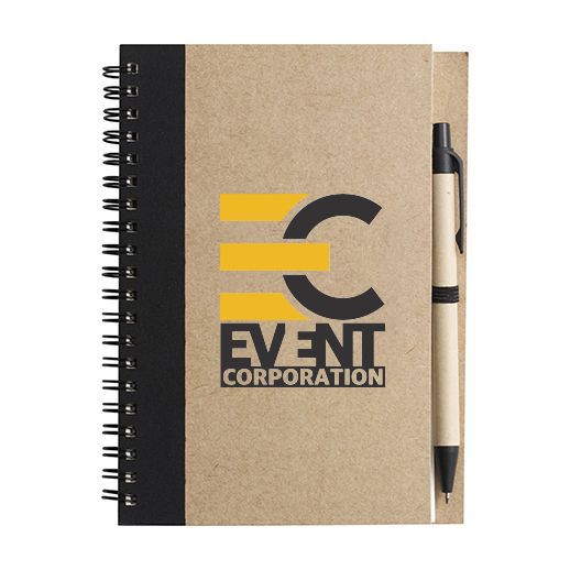This branded notebook is made from 100% recycled paper with bio coloured material and a semi-biodegradable pen. This promotional notebook comes with approximately 60 line pages with a matching coloured blue ink ball pen.