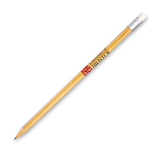 The classic HB lead pencil is made with a natural wood finish sourced from sustainable forestry. This branded pencil comes with a white eraser on the top and held with a silver ferrule. Printed pencils are ideal for schools, construction industry or trades. Prices shown are for your logo printed in 1-3 colours or full colour in one position